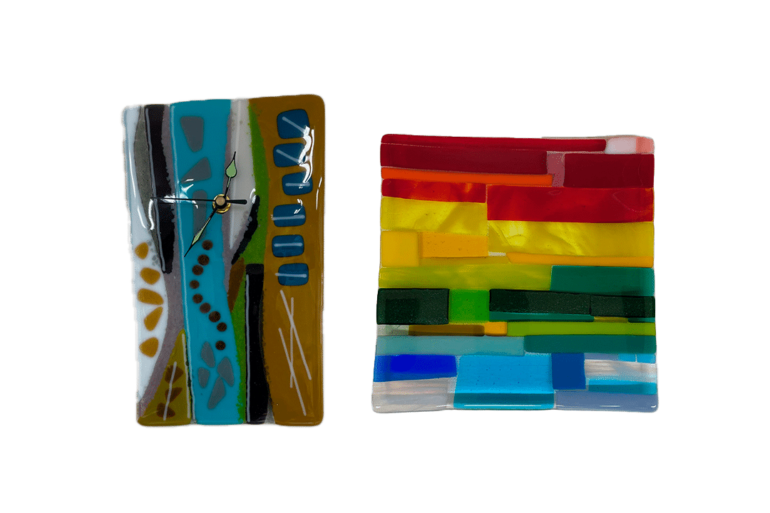 Create a one of a kind wall clock out of glass. Students will learn the basics of fused glass art from cutting skills and design layout to how glass is formed in the kiln. Bring your creative ideas and and learn the many possibilities of using a variety of colored glass, stringers and frit to create a functional piece of art glass that you will be proud to display. Please wear closed toed shoes and an apron if you like. All materials and firings included with Additional materials and firing schedules available for purchase. Please wear closed toes shoes, comfortable clothes and an apron.