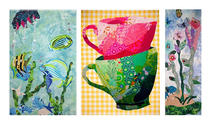 Applique Collage uses lightweight fusible bonding material and all the brightly colored scraps you can find! Batiks are wonderful for this. Your design will be created entirely from shapes and colors cut, numbered and assembled in sequence -then secured to your backing material. The finished piece can be stitched, embellished with buttons, jewels or backing material. Whatever sparks your imagination. Students are encouraged to create their own designs or use designs supplied by the instructor. No machines, just your imagination, brightly colored scraps, a 20 x 20 piece of fabric.The LAC has plenty of scraps for everyone to use.