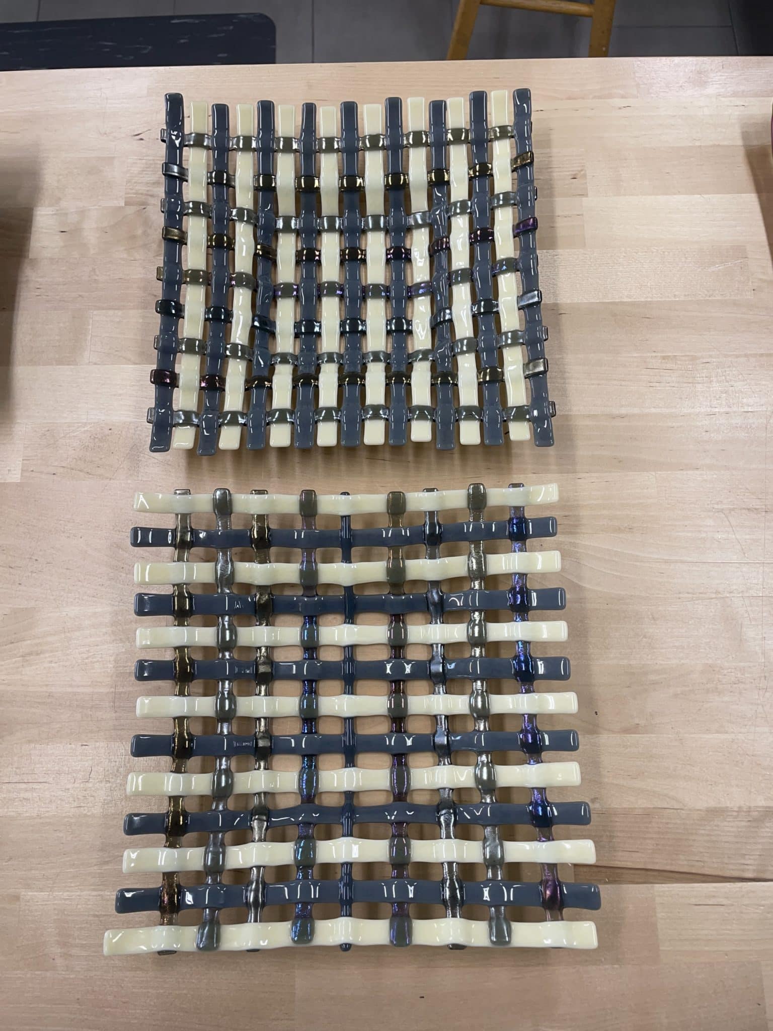 Weave your way into a beautiful look in Fused Glass! This 3 week session we will work on an exciting technique in the glass fusion world by creating woven effects in glass using a wide variety of glass materials and colors. You will learn strip glass cutting skills and how to make your own mold layouts with fiber paper to slump them into shapes that will then be fused and woven into a one of a kind glass dish for functional use or display. Some cutting skills helpful.