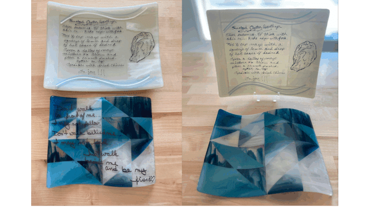 MoreCreate a beautiful Recipe Plate or Spoon Rest in fused glass. Students will learn the basics of glass fusion to design and create a one of a kind functional piece of glass art. Bring a special -short- Recipe in your handwriting to copy on glass with Glassline paints. Overall glass…