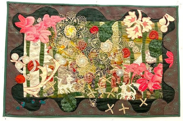 MoreApplique Collage uses lightweight fusible bonding material and all the brightly colored scraps you can find! Batiks are wonderful for this. Your design will be created entirely from shapes and colors cut, numbered and assembled in sequence -then secured to your backing material. The finished piece can be stitched, embellished…